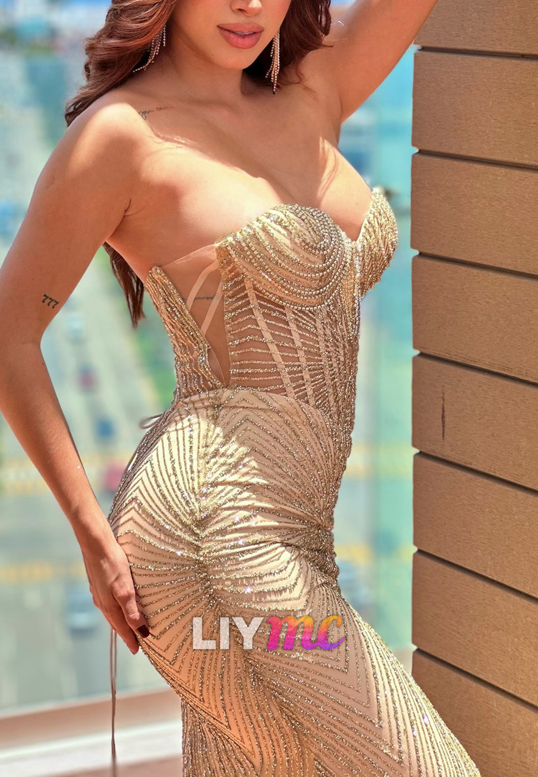 Enchant in this stunning mermaid prom dress that celebrates romantic femininity with luxurious embellishment. The sweetheart neckline curves gracefully, flattering the face and shoulders with timeless elegance. The sleeveless cut showcases the upper body beautifully while maintaining refined sophistication. Intricate beaded embroidery cascades across the bodice and fitted silhouette, creating artistic detail and visual richness throughout the gown. The dramatic mermaid cut hugs the body gracefully before flowing outward at the hem, creating an unforgettable, show-stopping effect. Perfect for those seeking a gown that merges romantic charm with elaborate embellishment, this dress is an exceptional choice for prom, formal galas, or any occasion where you want to radiate both grace and undeniable sophistication with luxurious, refined style.