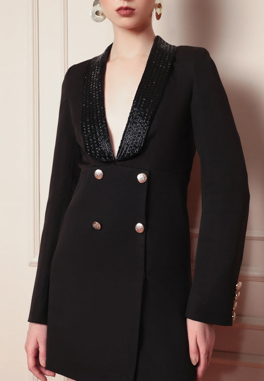 V-Neck Long Sleeves Button A-Line Mini Blazer Dress
