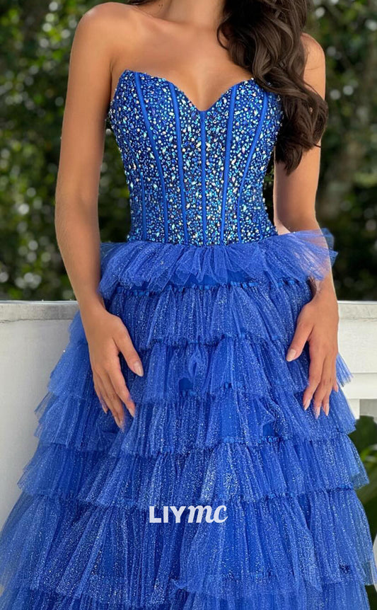LP2005 - Sweetheart Sleeveless Beaded Tiered Tulle A-Line Prom Dress