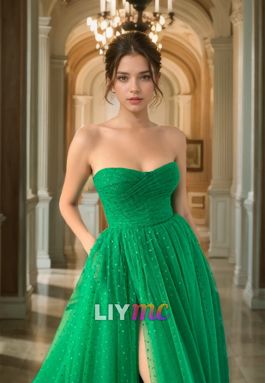 LP2044 - Sweetheart Sleeveless Tulle Side Slit Ball Gown A-Line Prom Dress