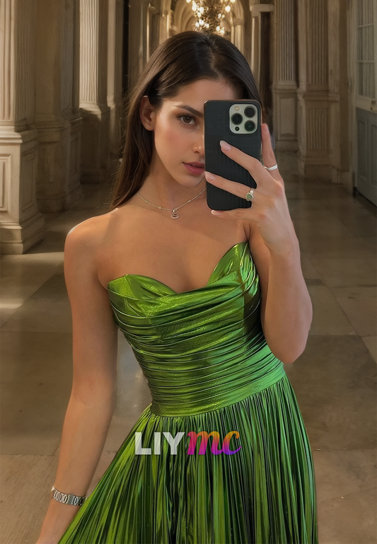 LP1983 - Semi-Sweetheart Strapless Pleated Sleek Satin A-Line Prom Dress