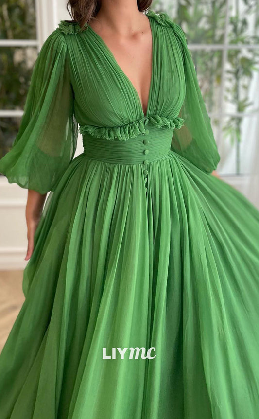 LP2099 - V-Neck Sleeves Tulle Empire Waist A-Line Prom Dress