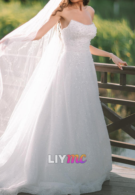 Off-Shoulder Beaded Sparkly A-Line Wedding Dress