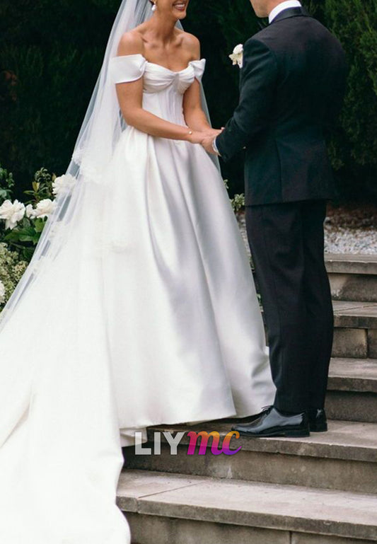 Off-Shoulder Corset Pleated A-Line Wedding Dress