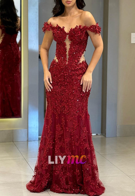 Off-Shoulder Floral Appliques Mermaid Prom Dress