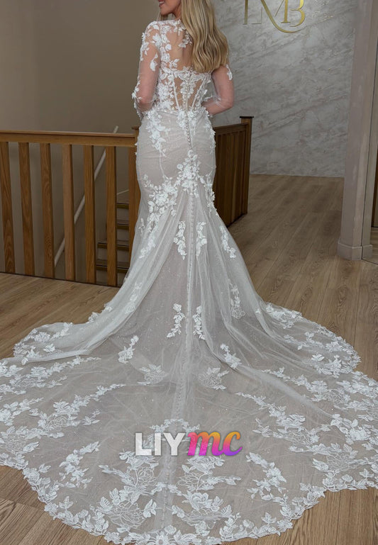 Sweetheart Long Sleeves Appliques Mermaid Wedding Dress
