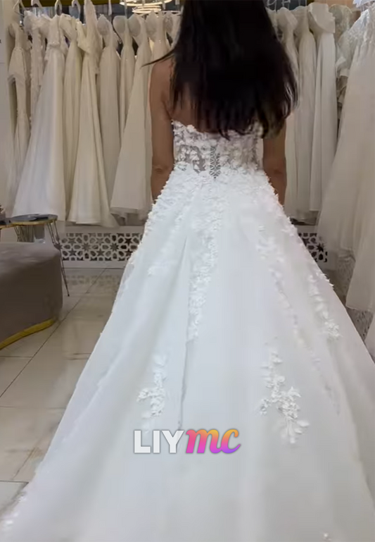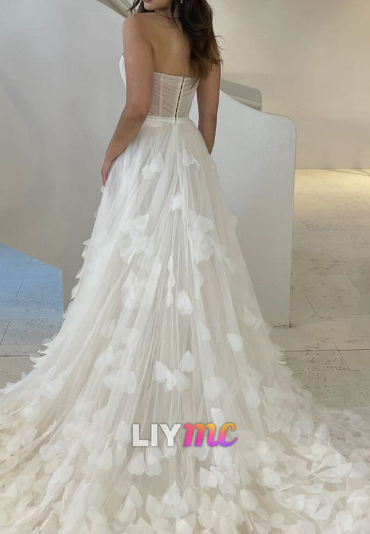 Sweetheart Strapless Floral Embellished A-Line Wedding Dress