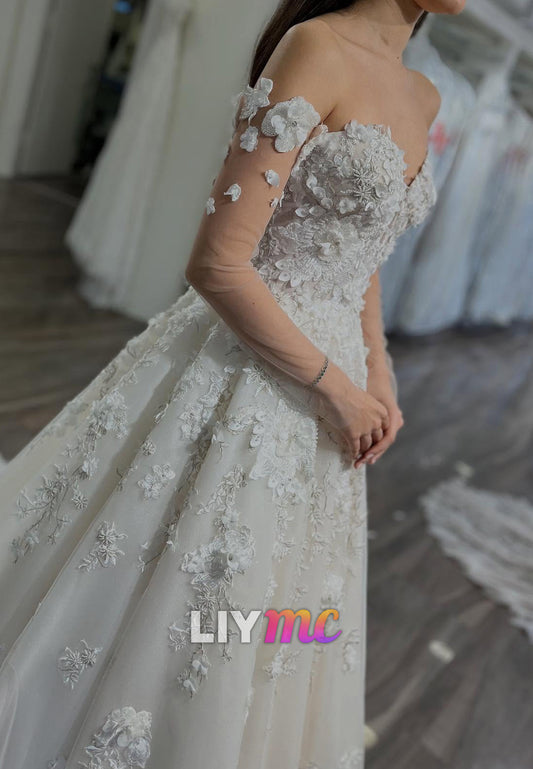 Sweetheart Strapless Floral Embellished Tulle Ball Gown Wedding Dress