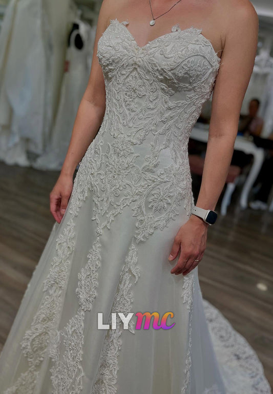Sweetheart Strapless Lace Appliques A-Line Wedding Dress