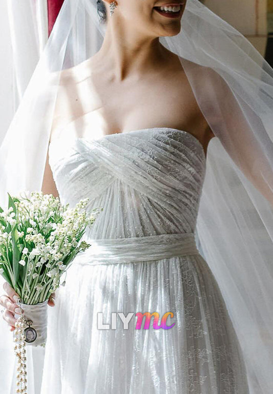 Sweetheart Strapless Pleated Illusion A-Line Beach Wedding Dress
