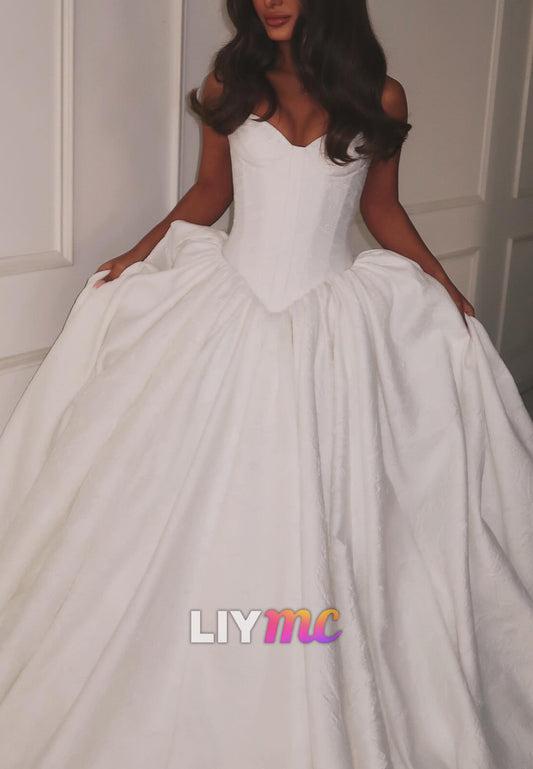 Sweetheart Strapless Pearl Beaded Ball Gown Wedding Dress