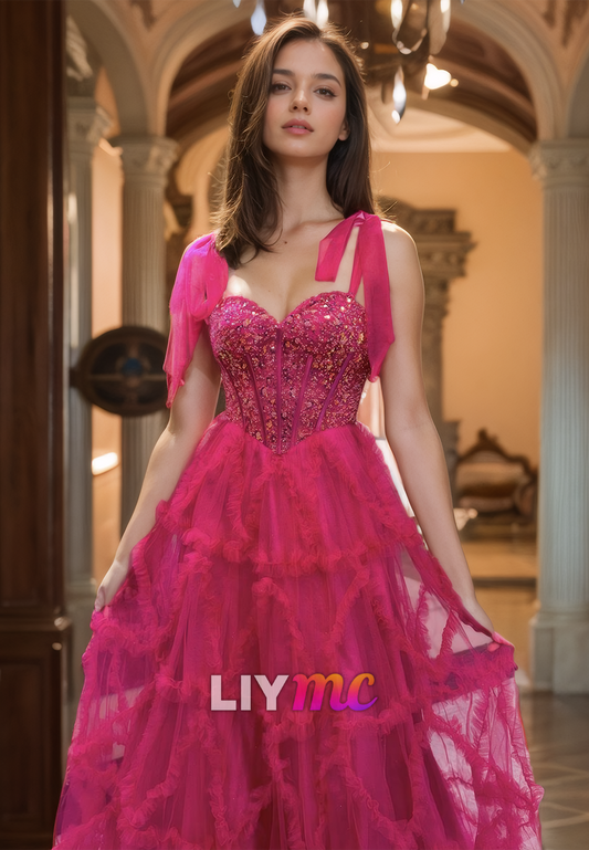 Sweetheart Straps Beaded Tulle A-Line Prom Dress