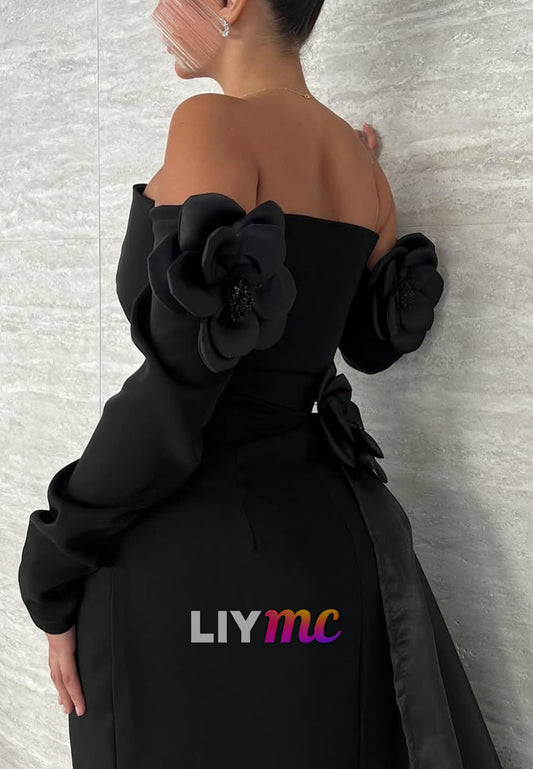 Off-Shoulder Long Sleeves Velvet Floral Mermaid Evening Dress