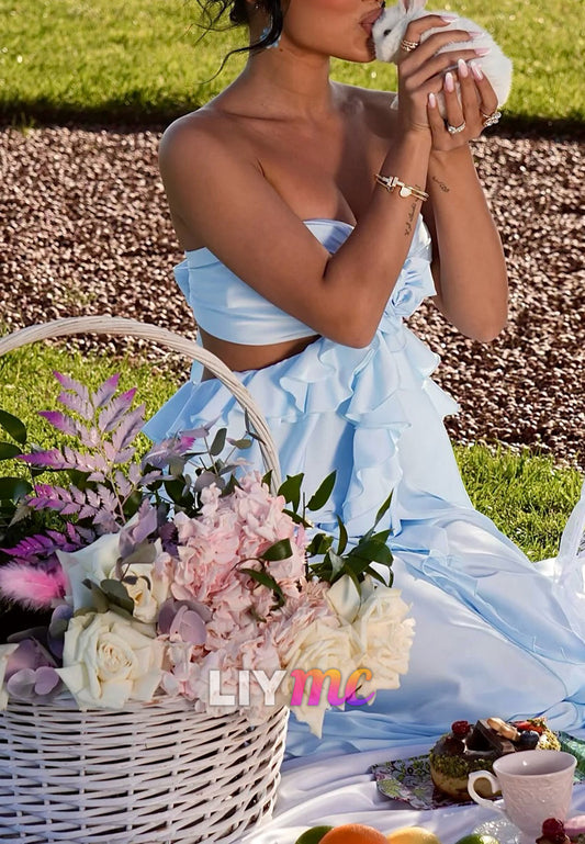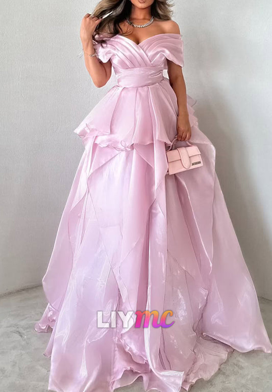 Off-Shoulder Sleeveless Sleek Tiered A-Line Evening Dress