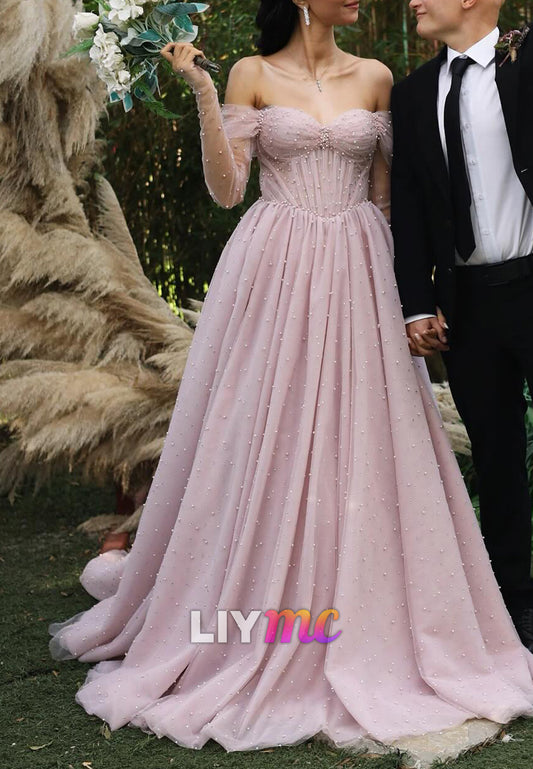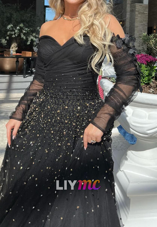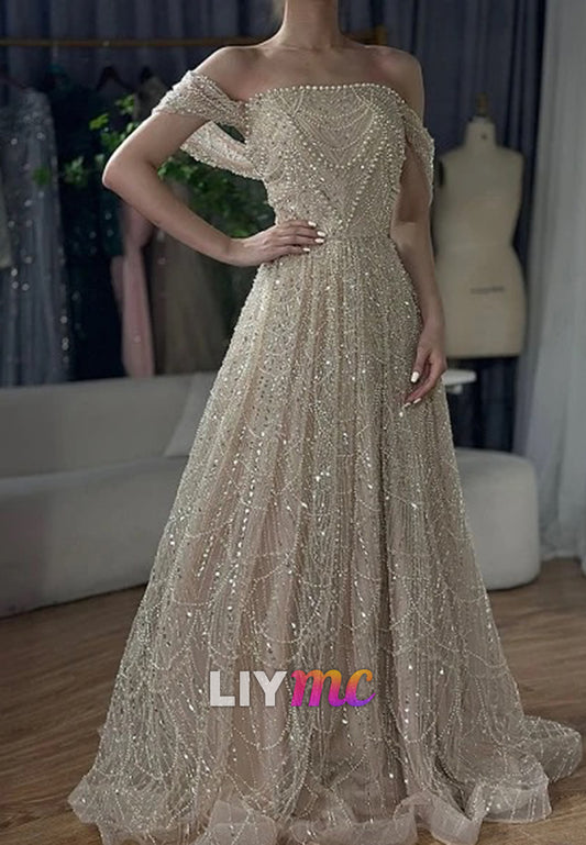Off-Shoulder Sparkly Beaded Embroidery A-Line Prom Dress