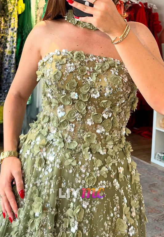 Sweetheart Sleeveless 3D Floral Side Slit Sheath Evening Dress