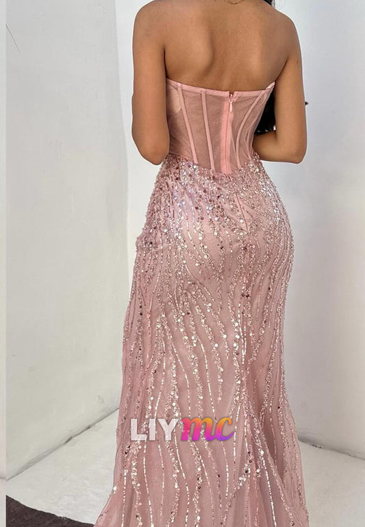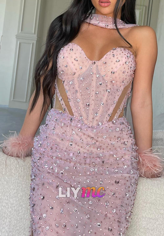 Asymmetrical Sequins Side Slit Sparkly Sheath Prom Dress