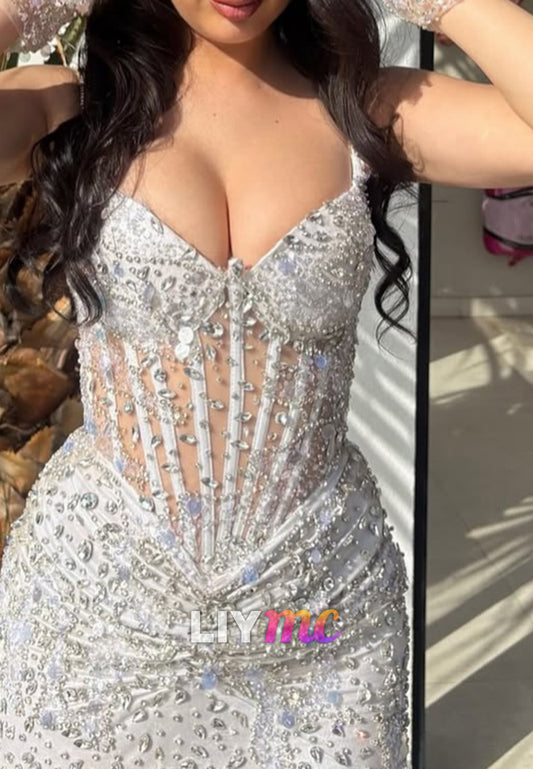 Sweetheart Straps Sparkly Fitted Silver Mermaid Prom Dress