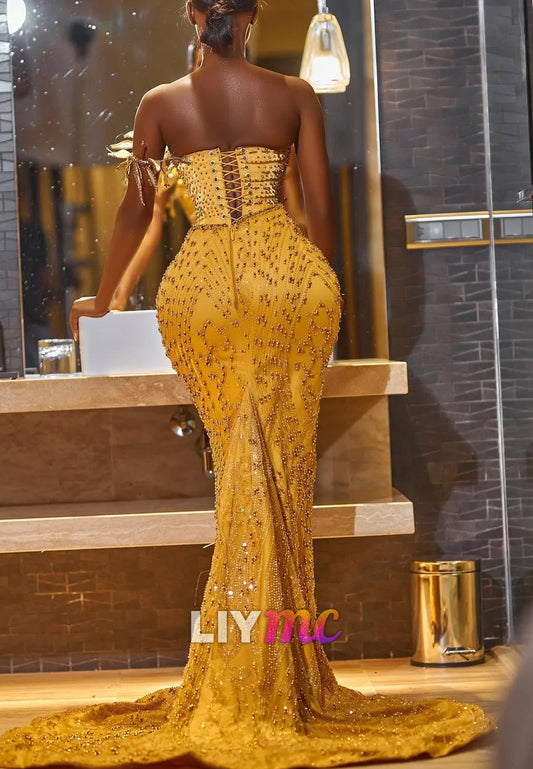 Sweetheart Sleeveless Beaded Mermaid Satin Evening Dress