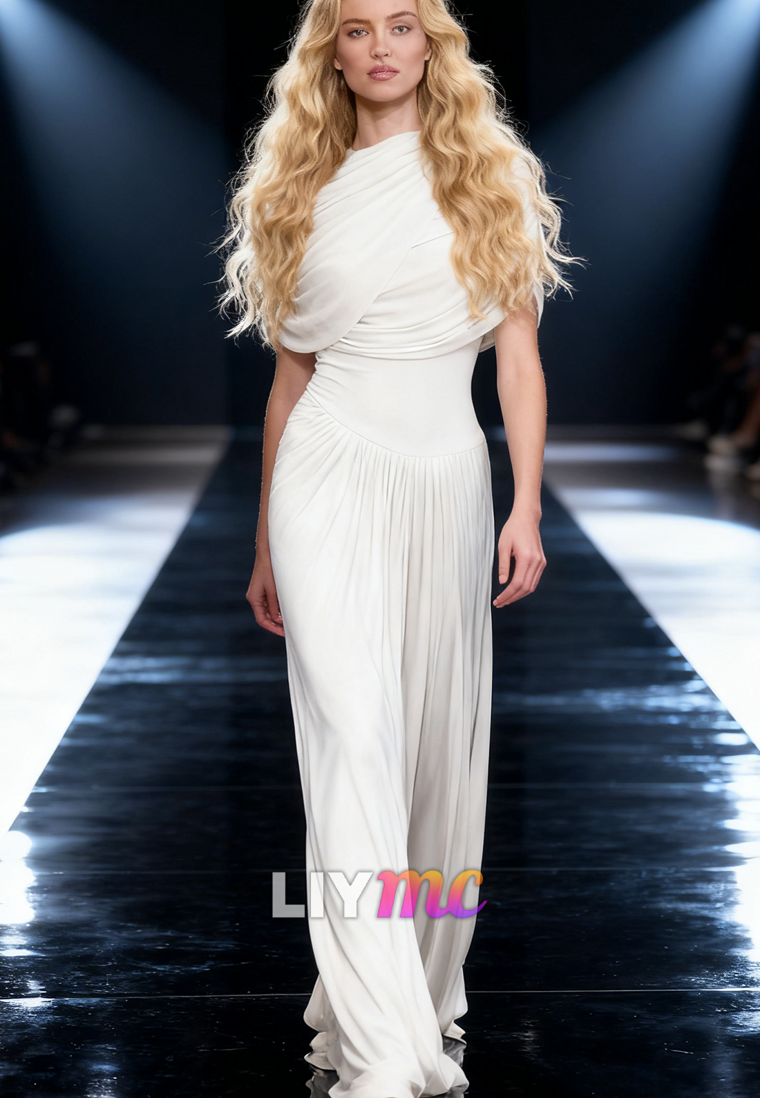 Elevate your formal wardrobe with this refined dress that balances structure with grace. The mock neck provides a polished, contemporary neckline while sleeveless shoulders create an open, sophisticated silhouette. Delicate pleating throughout the bodice and skirt adds visual interest and dimension, while the A-line cut ensures a flattering fit that moves with ease. Ideal for those seeking a dress that combines modern design sensibilities with timeless formal elegance.