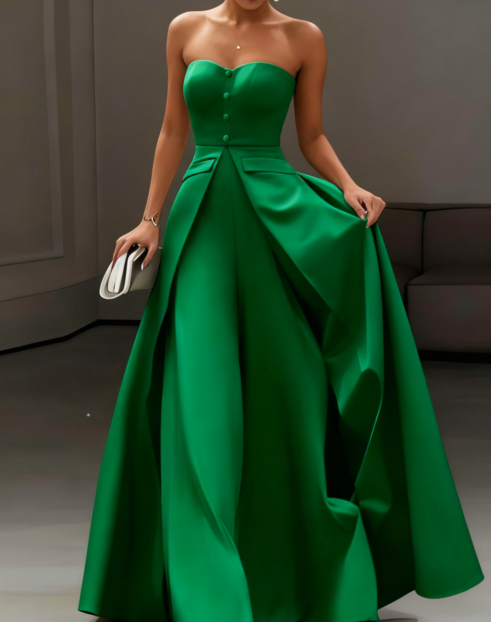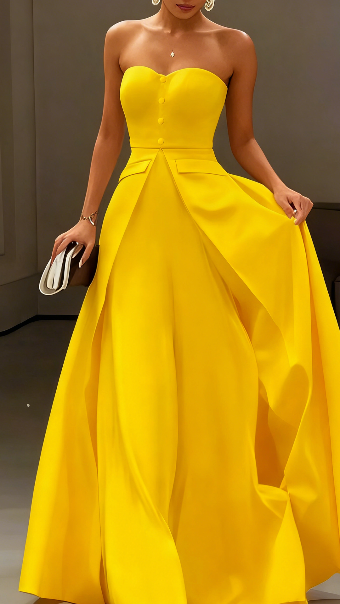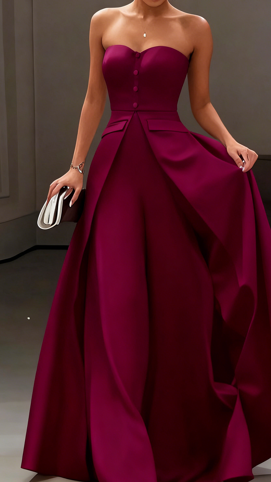 Achieve a sleek and sophisticated look with our White Buckle Strapless Sleeveless Two-Piece Set. The strapless top and sleeveless design provide a flattering fit, while the white buckle adds a touch of elegance. Perfect for any formal occasion or a day at the office. Made with high-quality materials for a comfortable and stylish experience.