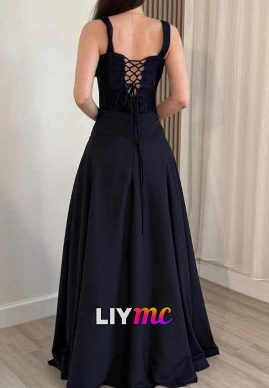 Simple ChiffonSquare Neck Sleeveless Long Prom Dress With Pleated And Train