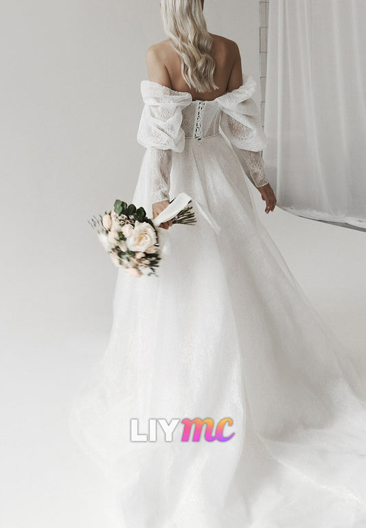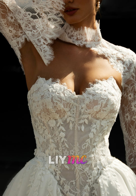 Sweetheart Long Sleeves Lace Appliques A-Line Wedding Dress