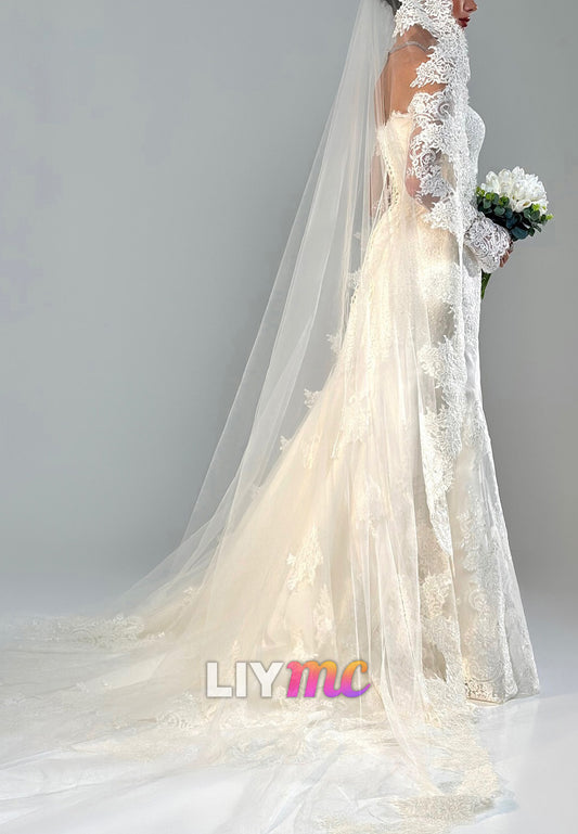 Sweetheart Long Sleeves Lace Appliques Fitted Mermaid Wedding Dress