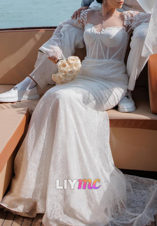 Sweetheart Long Sleeves Illusion Sleek Mermaid Wedding Dress