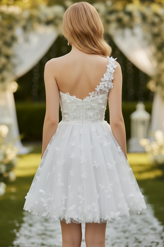 One Shoulder Floral Appliques Short A-Line Wedding Dress