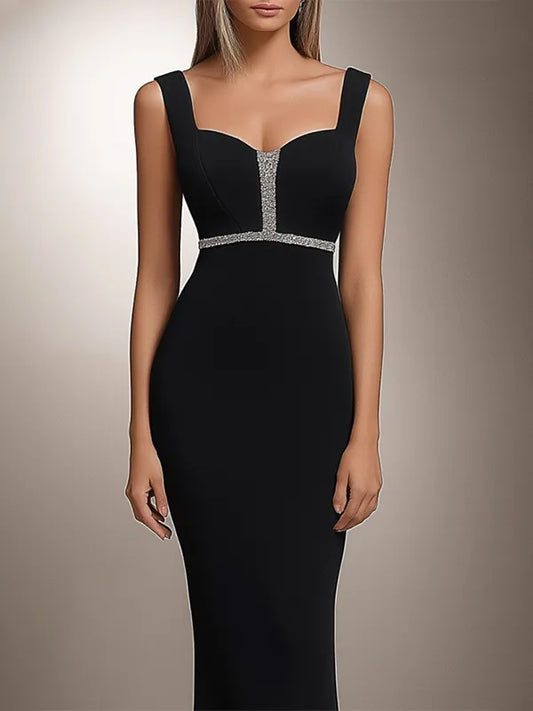 Semi-Formal Party Dress Black Silver Embellished Slim Midi Dress