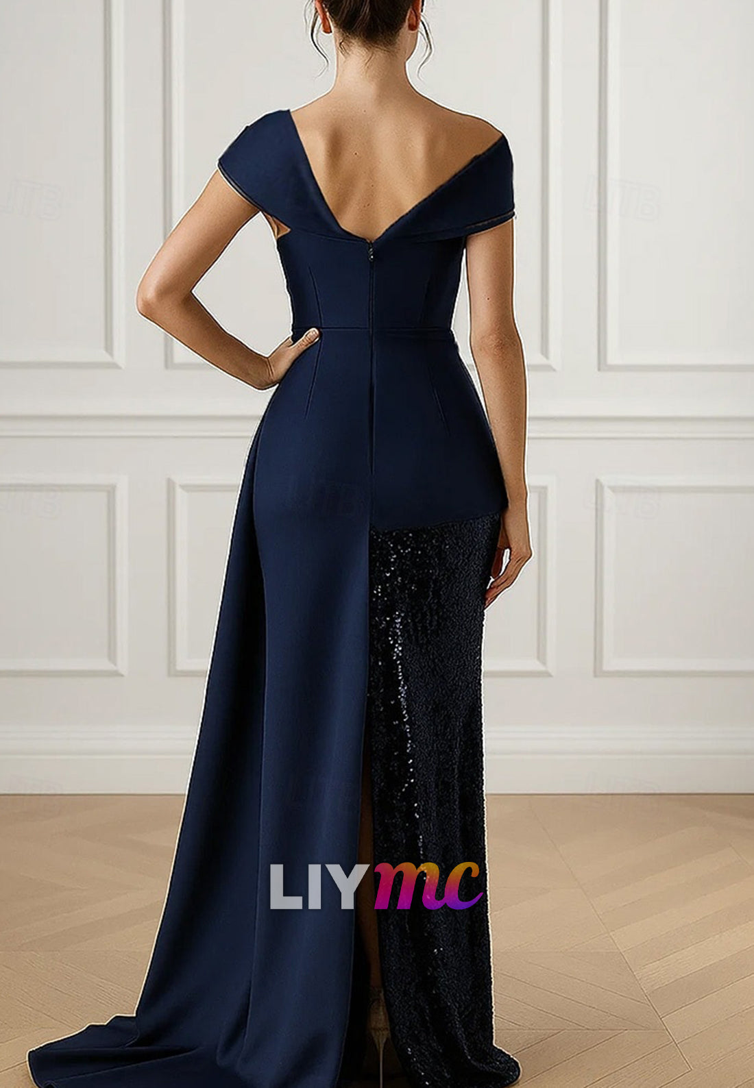 Column SweepT rain Evening Gown Ball Gown with Overskirt Formal Dress