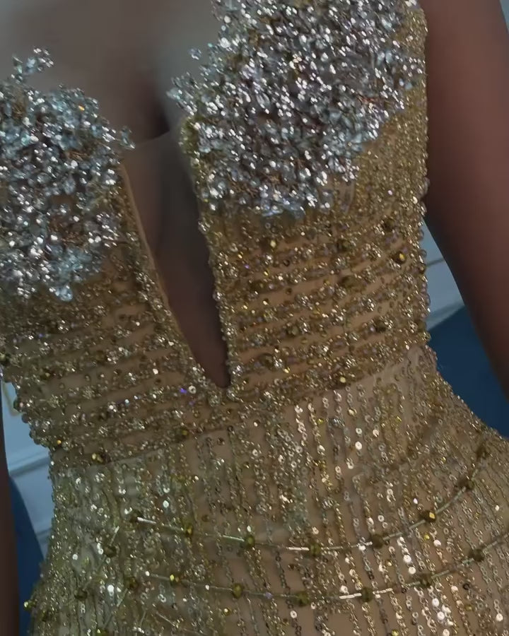Celebrate your elegance in this stunning sheath prom dress designed to enhance and complement your natural beauty. The flattering V-neckline creates a graceful focal point, while the sleeveless cut showcases your shoulders with refined simplicity. Exquisite beaded embroidery adorns the bodice with intricate artistry, adding dimensional detail and opulent sparkle that illuminates beautifully against deeper skin tones. A sensual side slit introduces contemporary flair and ease of movement, perfectly balancing the gown's classic elements. The sleek sheath silhouette hugs your curves with precision, creating a streamlined, modern aesthetic that celebrates your form. This sophisticated gown perfectly merges timeless elegance with contemporary style, ensuring you feel confident, radiant, and absolutely stunning throughout your special evening.