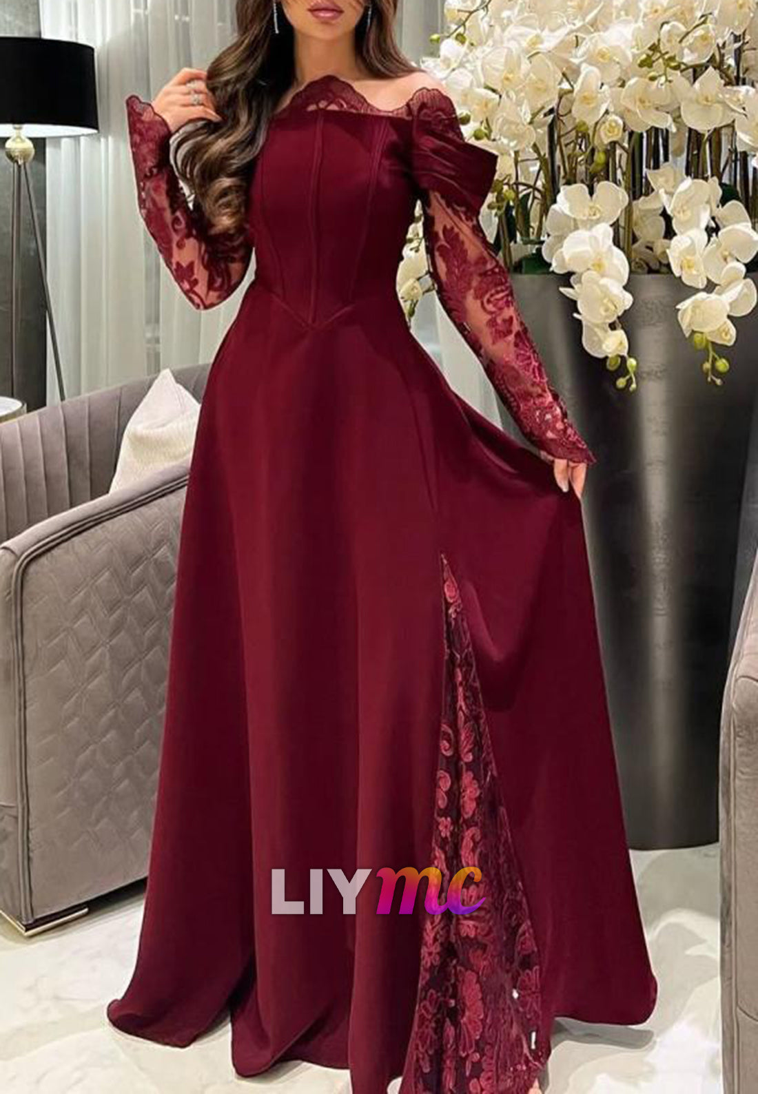 Off-Shoulder Long Sleeves Appliques A-Line Evening Dress