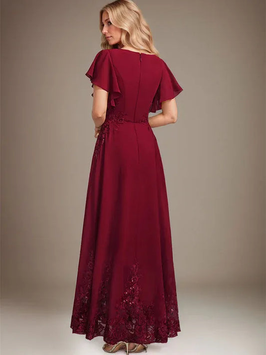 A-line V-Neck Ankle-Length Chiffon Mother of the Bride Dress With Sequins Appliques Lace Beading