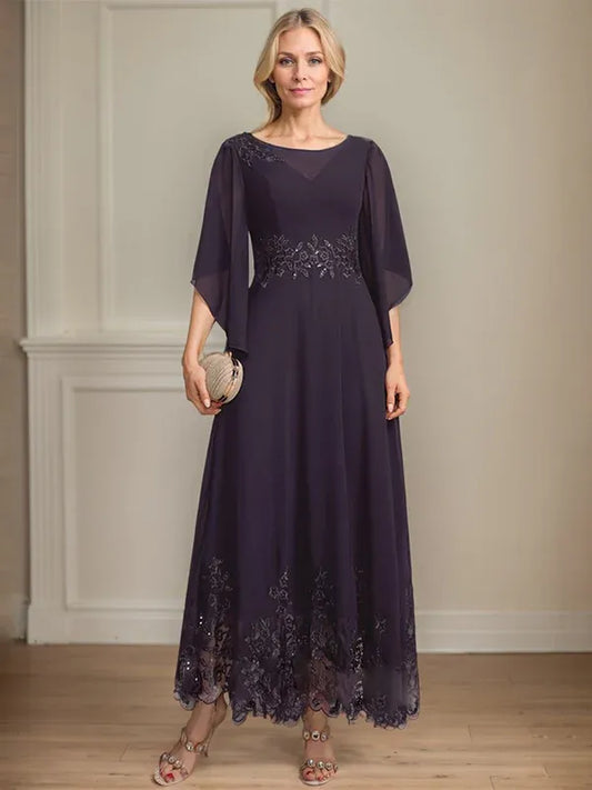 A-line Scoop Ankle-Length Lace Chiffon Mother of the Bride Dress With Sequins