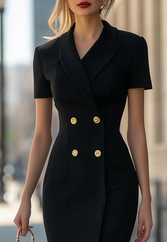V-Neck Short Sleeves Button Sheath Blazer Dress