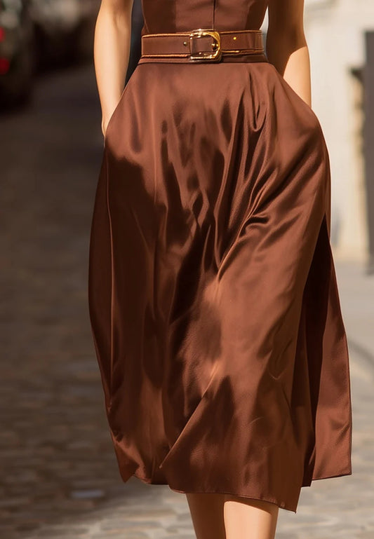 V-Neck Sleeveless Belt A-Line Midi Cocktail Dress