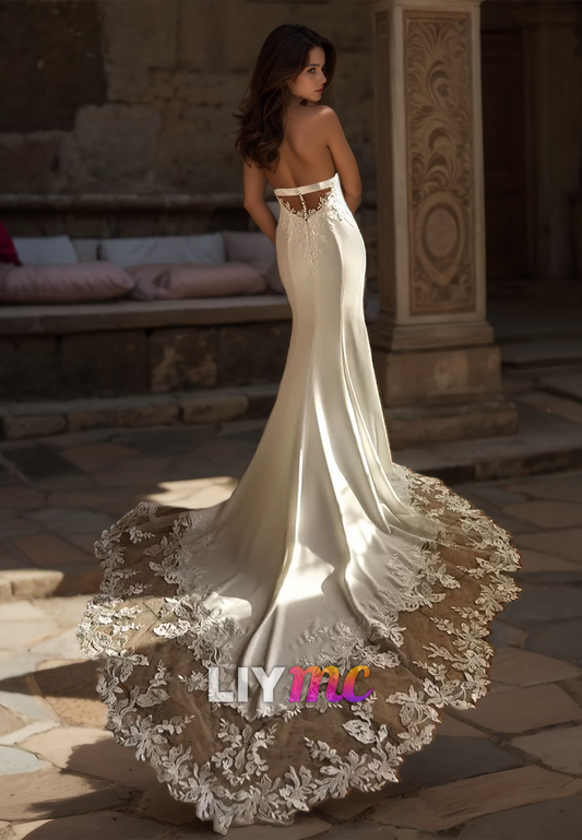 V-Neck Sleeveless Mermaid Strapless White Lace Wedding Dresses