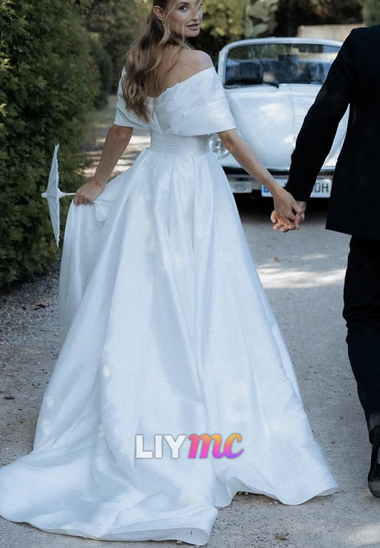 V-Neck Sleeveless Sleek Pleated Satin A-Line Simple Wedding Dress