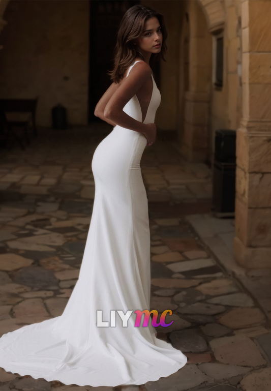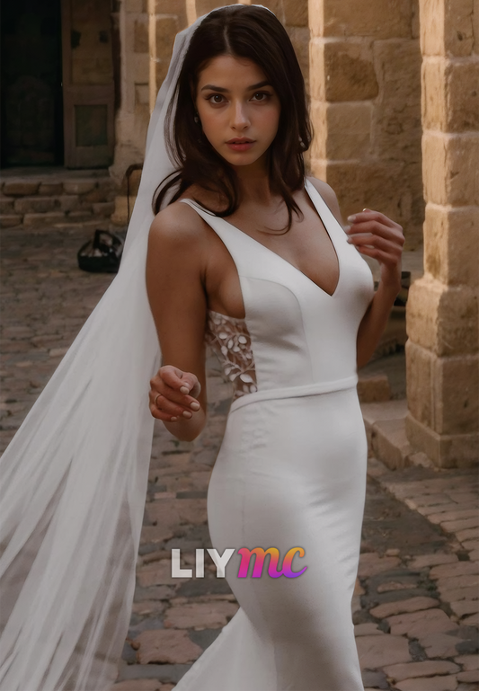 V-Neck Sleeveless Sleek Mermaid Bodycon Wedding Dress