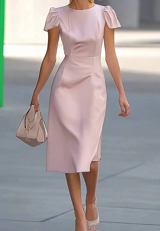 Wedding Guest Semi-Formal Dress Light Pink Round Neck Knee-Length Dress
