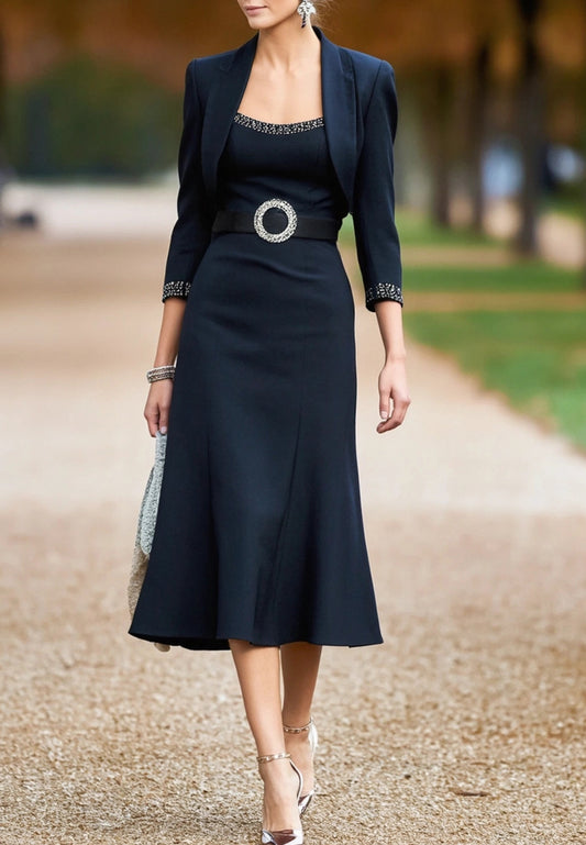 Wedding Outfit Sets Dress Navy Midi Mother of the Bride Dress