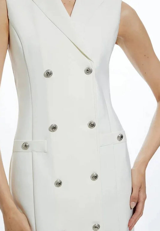 Gloria White Mini Blazer Sheath Sleeveless Button Short Work Dress