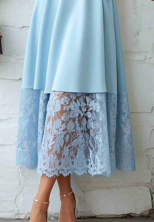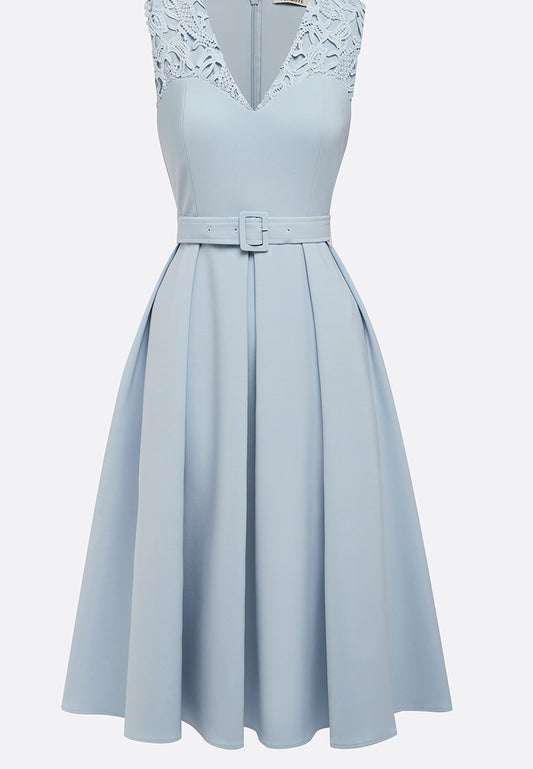 Light Blue Lace V Neck Sleeveless A-Line Midi Dress