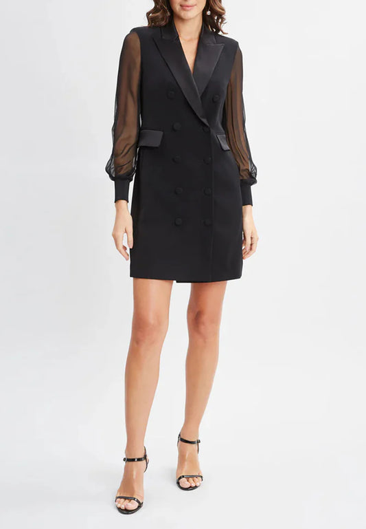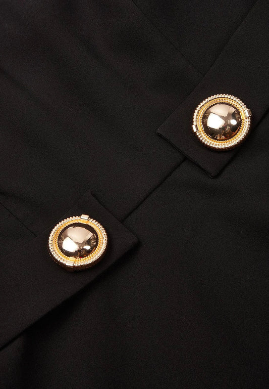Black Double-Breasted Blazer Dress with Gold Buttons