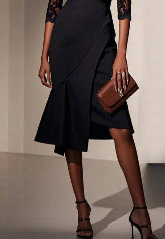 Black White Work Dress Knee-Length Pencil Flared Mermaid Dress