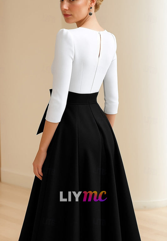 Black and White A-Line Cocktail Dresses Elegant Dress Formal Wedding Tea Length Midi Length Half Sleeve V Neck Pleats