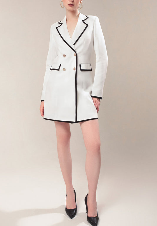 Blazer Long Sleeves Flow White Black Bussiness Work Midi Dress