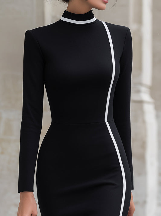 Bodycon Mini Dress With White Trim Accents